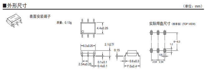 4、低驅動電流 :在推薦運行條件(標準)下的驅動電流為2-15mA。還有小到可用0.2mA驅動的產品,為整體設備的節能化作出貢獻。接觸可靠性優異,與機械式繼電器相比,能使機械設備小型化,更節能化。