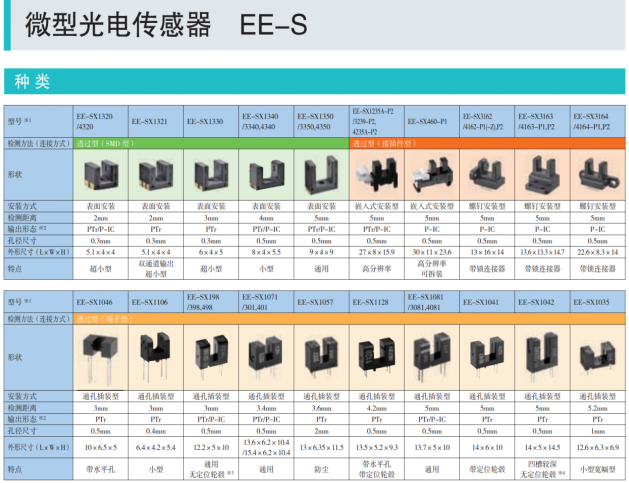 歐姆龍EE-SX系列槽型對(duì)射光電傳感器,檢測(cè)距離1-15mm可選,響應(yīng)速度小于1ms,具分辨率高,備NPN 、PNP常開(kāi)常閉可選,且安裝形式豐富。