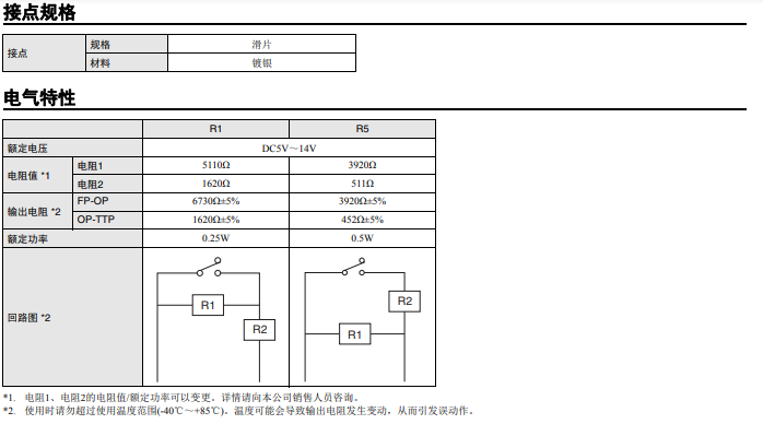 內(nèi)置電阻,可檢測(cè)4種狀態(tài) 長(zhǎng)行程密封型開(kāi)關(guān) 開(kāi)關(guān) ON/OFF/短路/斷線(xiàn) 輸出4種狀態(tài) 即使無(wú)擺桿也便于使用的長(zhǎng)行程規(guī)格 (OT參考值:1.4mm) 憑借滑動(dòng)接點(diǎn)結(jié)構(gòu)實(shí)現(xiàn)高接觸可靠性和安靜的動(dòng)作音