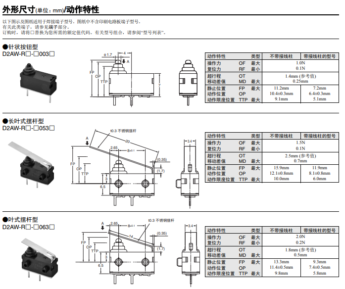 D2AW-R 歐姆龍長(zhǎng)行程密封型歐姆龍開(kāi)關(guān)
