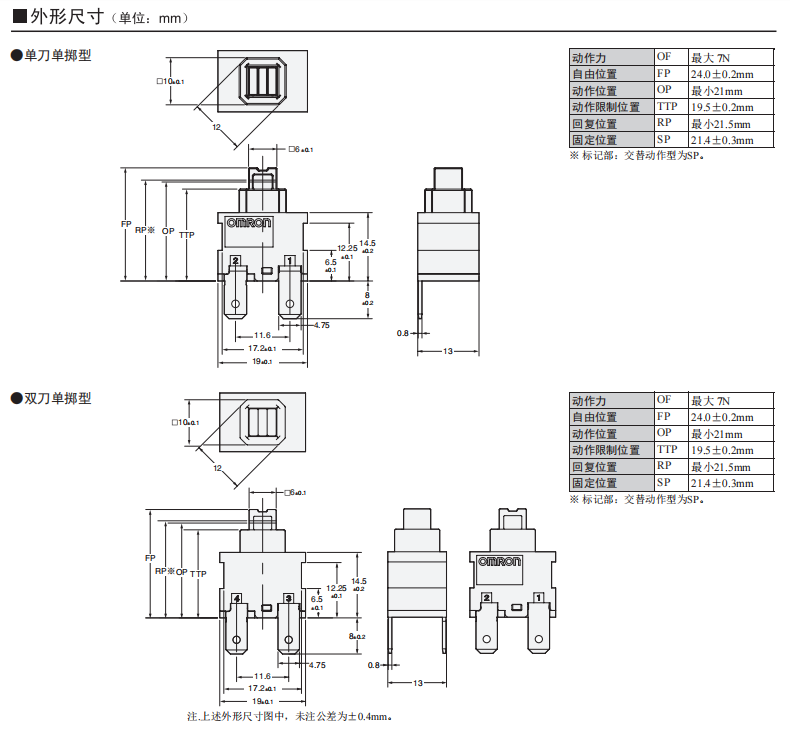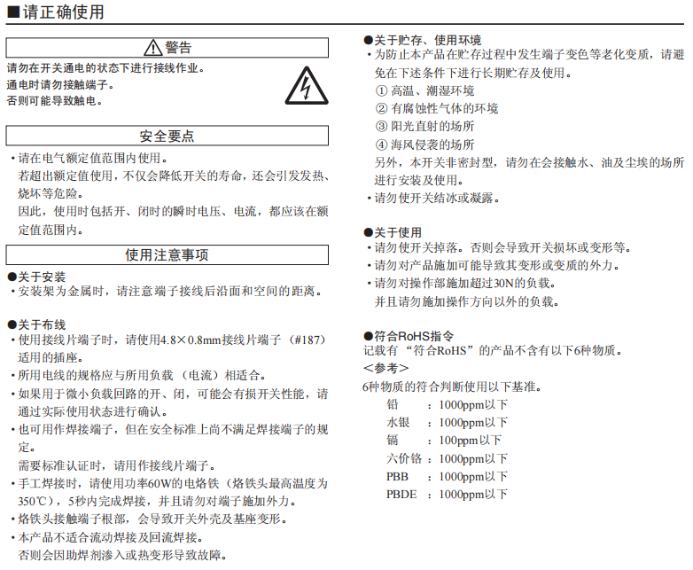 接點間隔3mm以上的小型電源開關(guān) 采用特定的速斷機構(gòu),可進(jìn)行功率負(fù)載開、閉。開、閉利落、良好的操作感。 確保接點間隔3mm以上。 符合UL、cUL標(biāo)準(zhǔn)、符合EN標(biāo)準(zhǔn)。