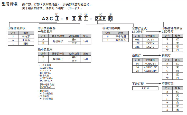 A3C系列按鈕歐姆龍開關(帶燈、不帶燈)(圓型φ12)