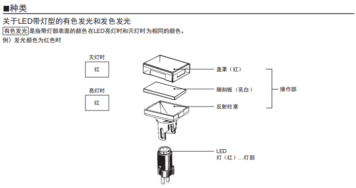 長20mm、 圓型f12系列 高亮度的均一表面發光。 圓形便于開孔。 形狀小巧,操作感好。