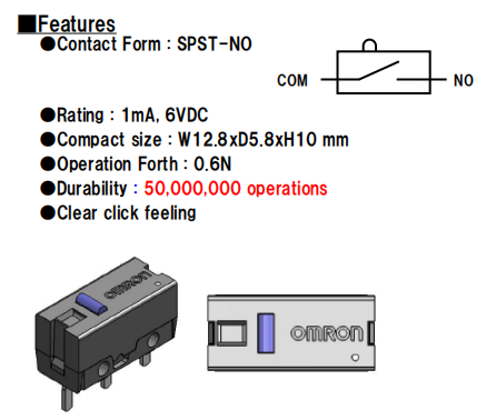 D2FC-F-7N(20M) 2000萬次鼠標開關