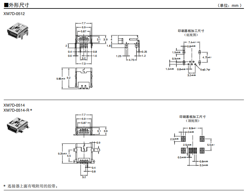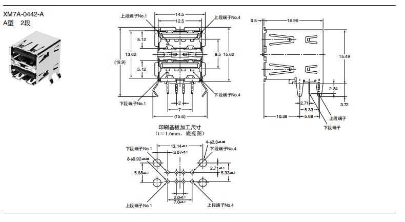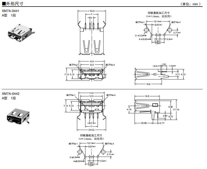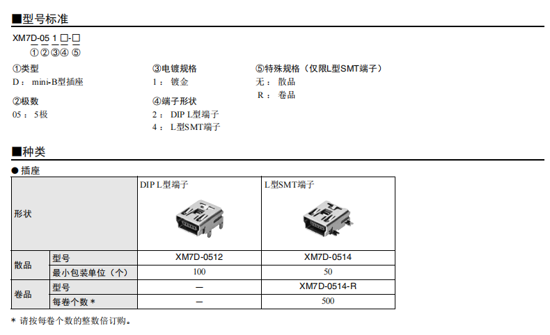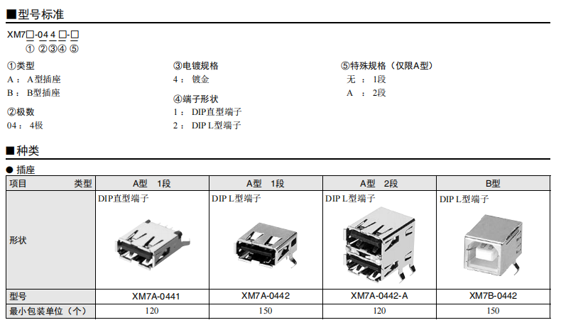 符合USB標準的 小型接口連接器 符合USB2.0標準。 插拔次數(shù)可達1,500次。 A型插座封裝在計算機主體、USB集線器等上,B型插座封裝在調制解調器、掃描儀、鼠標等計算機外圍設備上。 有無認證規(guī)格,請參見“規(guī)格認證”。