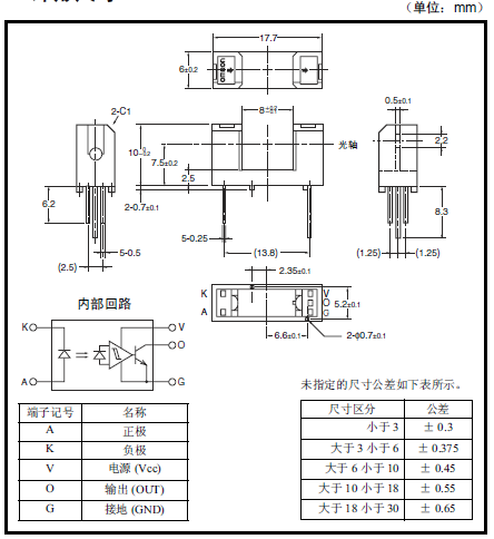 光電IC輸出型微型光電傳感器[透過型] 受光元件與增幅回路內置于一個芯片 受光元件中內置有溫度補償回路 適用電源電壓為DC4.5 ~ 16V 可直接連接C-MOS、TTL 高分辨率(狹片寬度 0.5mm) 遮光時ON型:EE-SX3070