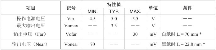 電氣及光學特性 (Ta=25℃、 Vcc=5.0V)