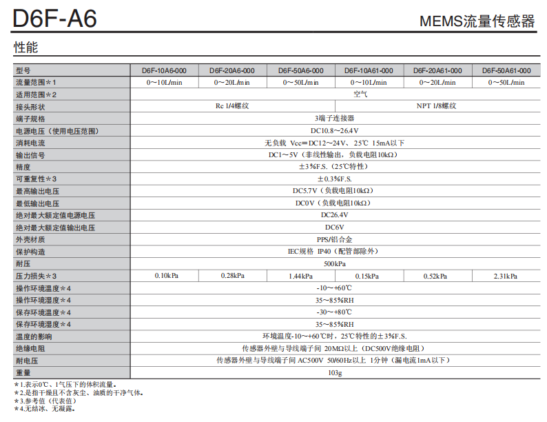 D6F-A7/-N7/-L7燃氣流量歐姆龍傳感器